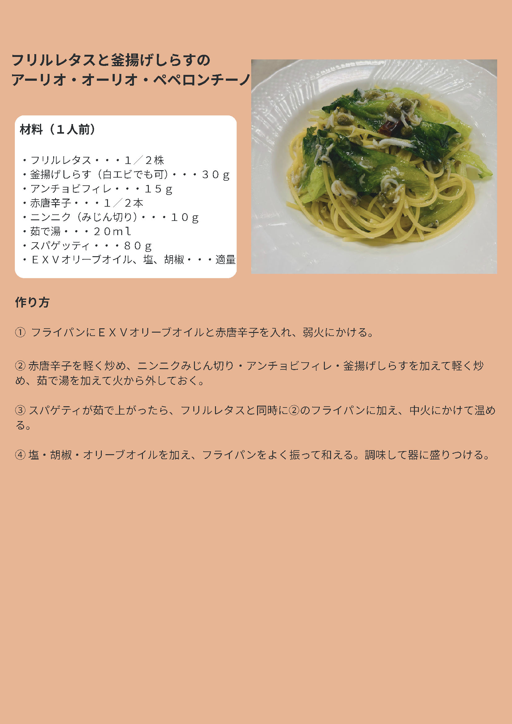 🌶️フリルレタスと釜揚げしらすのアーリオ・オーリオ・ペペロンチーノ